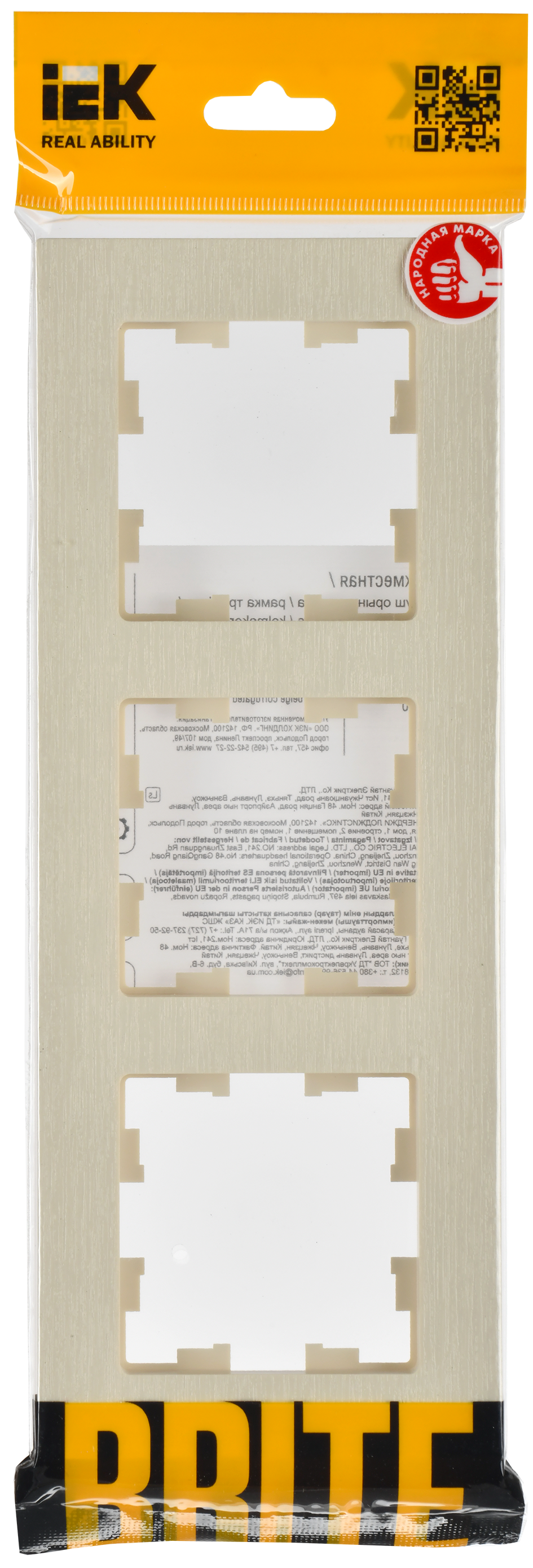BRITE Рамка 3-мест. РУ-3-Бр беж. рифленый IEK в Орске