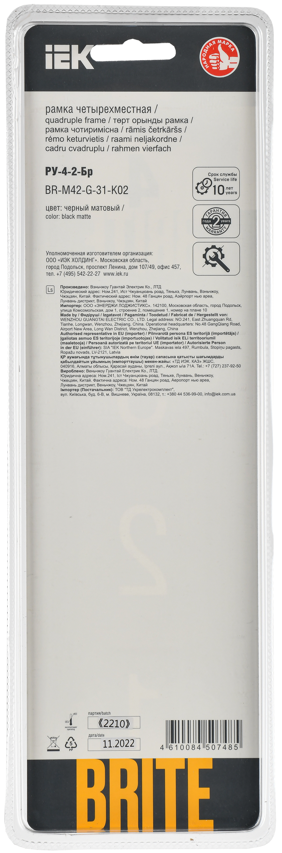 BRITE Рамка 4-мест. РУ-4-2-Бр стекло черн. матовый IEK в Орске