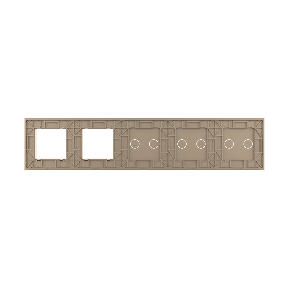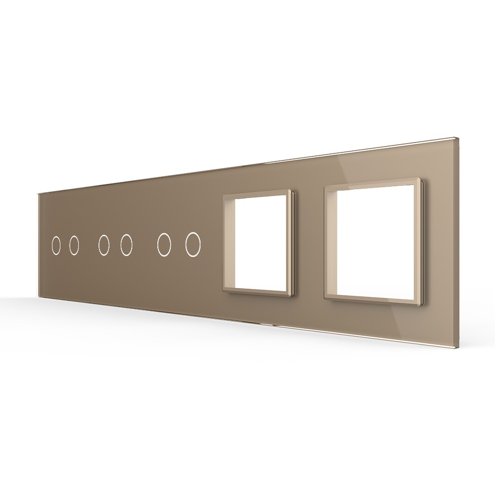 Панель для 3-х сенсорных выключателей и 2-х розеток, 6 клавиш (2+2+2), цвет золотой, стекло Livolo доступен в интернет‑магазине ВольтМаркет в Орске. Покупая у нас, вы получаете дополнительные преимущества: