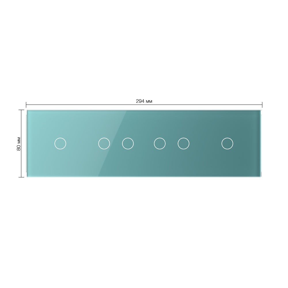 Панель для четырех сенсорных выключателей, 6 клавиш (1+2+2+1), цвет зеленый, стекло Livolo в Орске