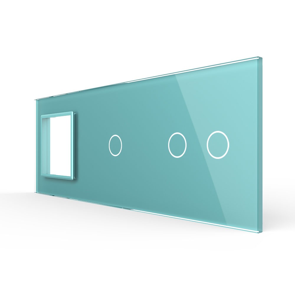 Панель для розетки и двух сенсорных выключателей, 3 клавиши (1+2), цвет зеленый, стекло Livolo в Орске