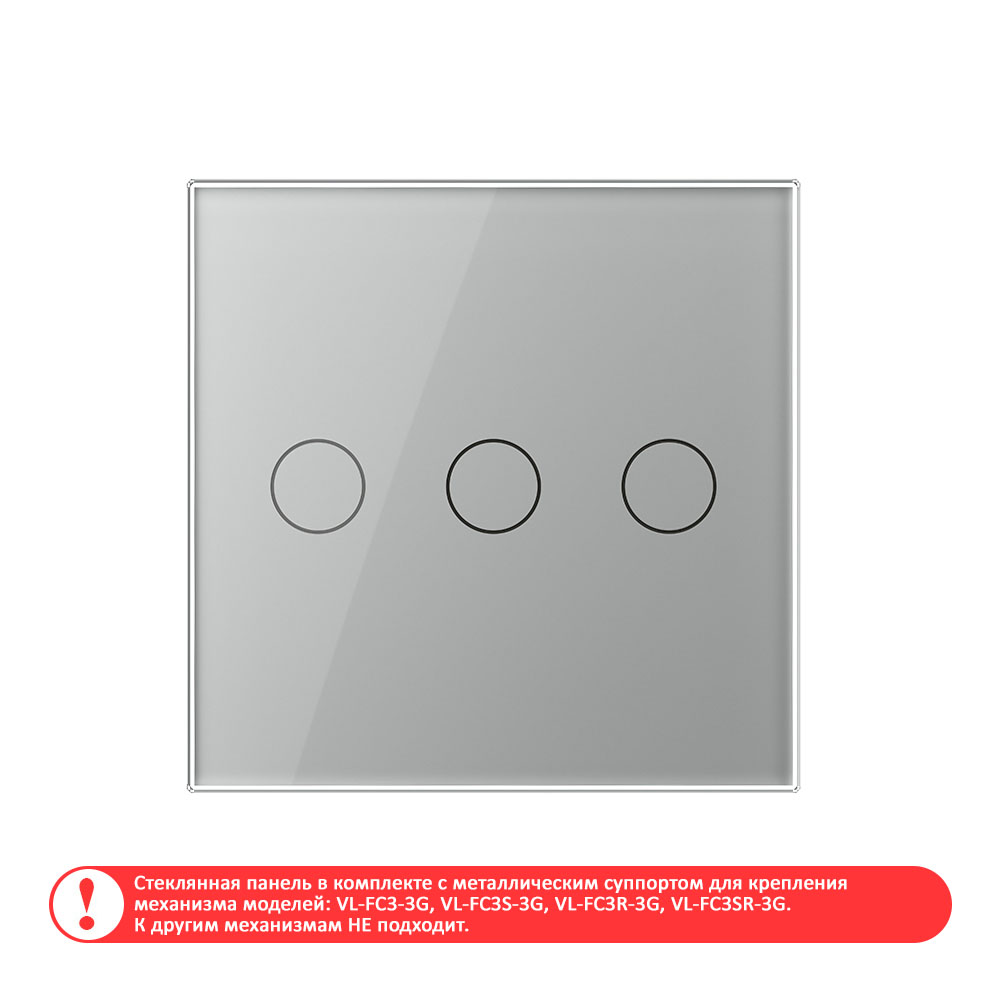 Панель для сенсорного выключателя UK стандарт, 3 клавиши, цвет серый, стекло B Livolo в Орске