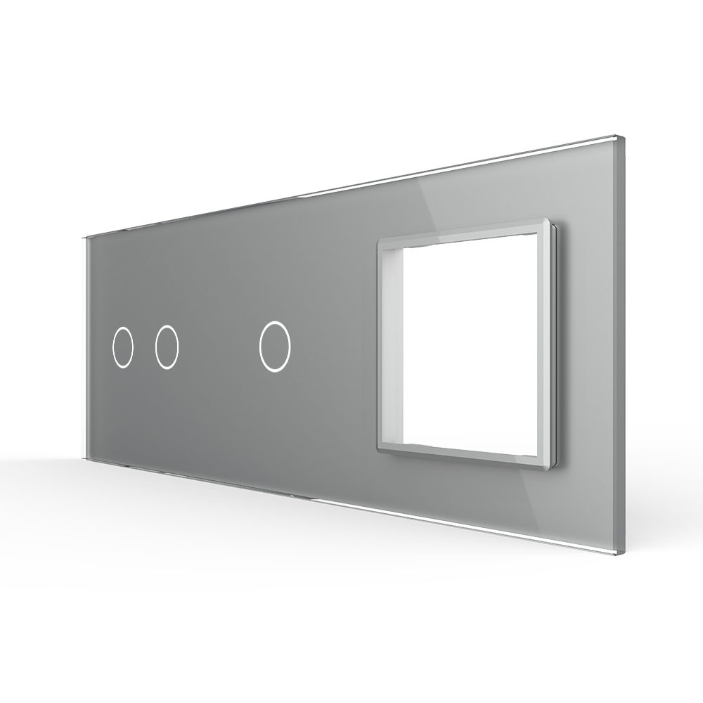 Панель тройная: 2 выключателя + 1 выключатель + 1 розетка Серая Livolo в Орске