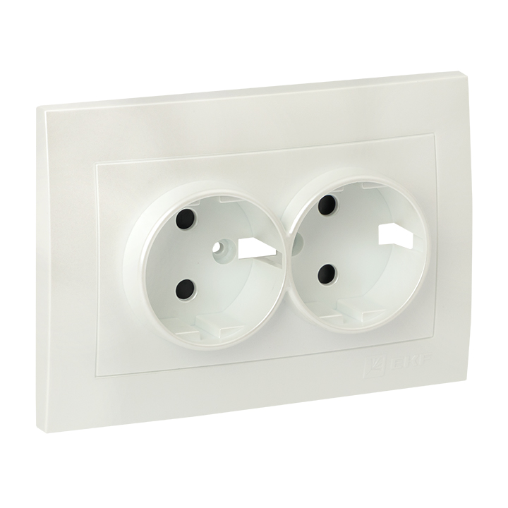 Валенсия Лицевая панель розетки 2-местной с/з 16А жемчуг с защ, штор, EKF в Орске