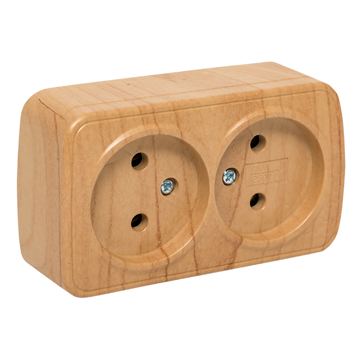 Минск Розетка 2-местная ОП 10А без заземления светлое дерево EKF в Орске