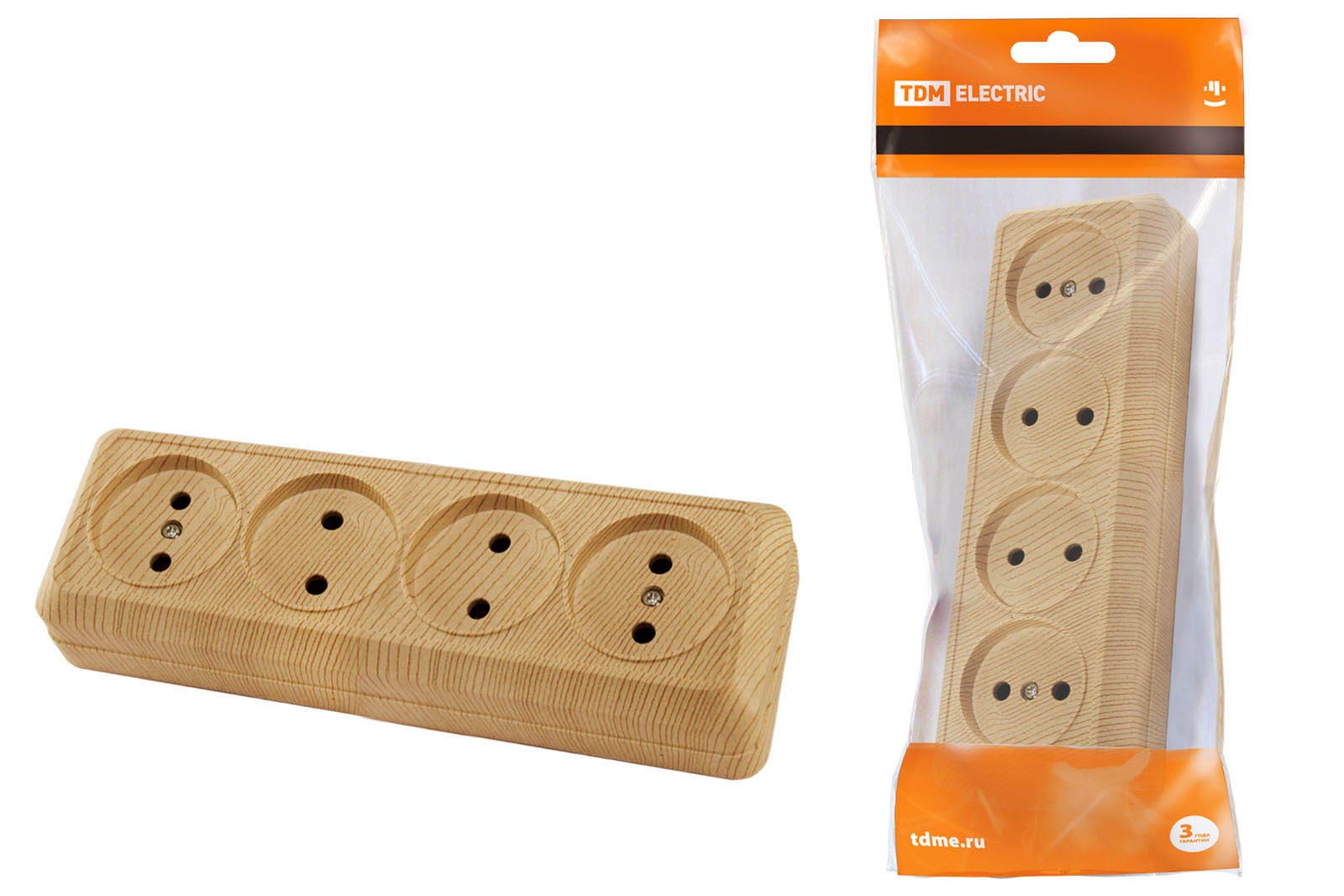 Розетка 4-х местная горизонтальная 2П открытой установки IP20 10A сосна "Ладога" TDM в Орске