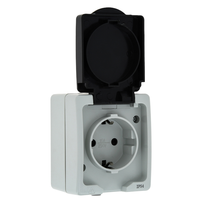 Розетка влагозащищённая с заземлением для открытой установки — это электроустановочное изделие, предназначенное для подключения силового оборудования в условиях повышенной влажности. Она оснащена защитой от попадания влаги и имеет контакт заземления для безопасности.