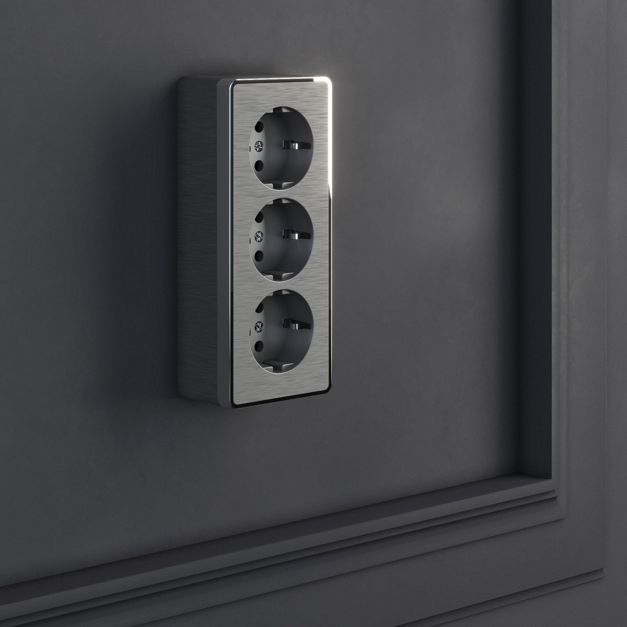 Розетка тройная с заземлением и шторками (графит рифленый) Gallant ОУ IP20 Werkel в Орске