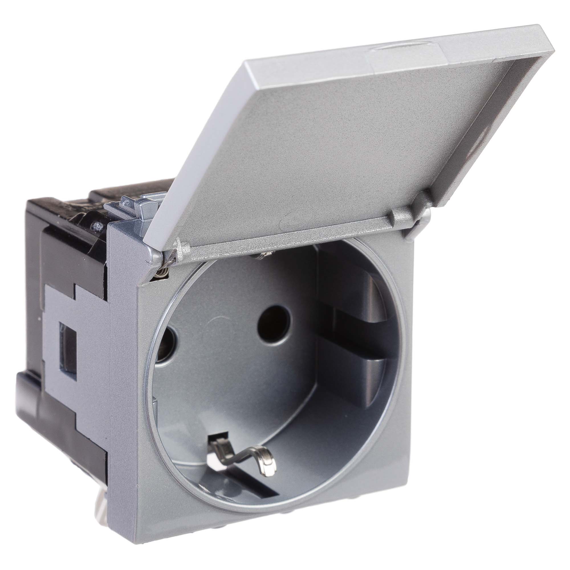 Розетка с крышкой модульная, 2P+E, с з/ш, "Avanti", "Закаленная сталь",2 модуля DKC в Орске