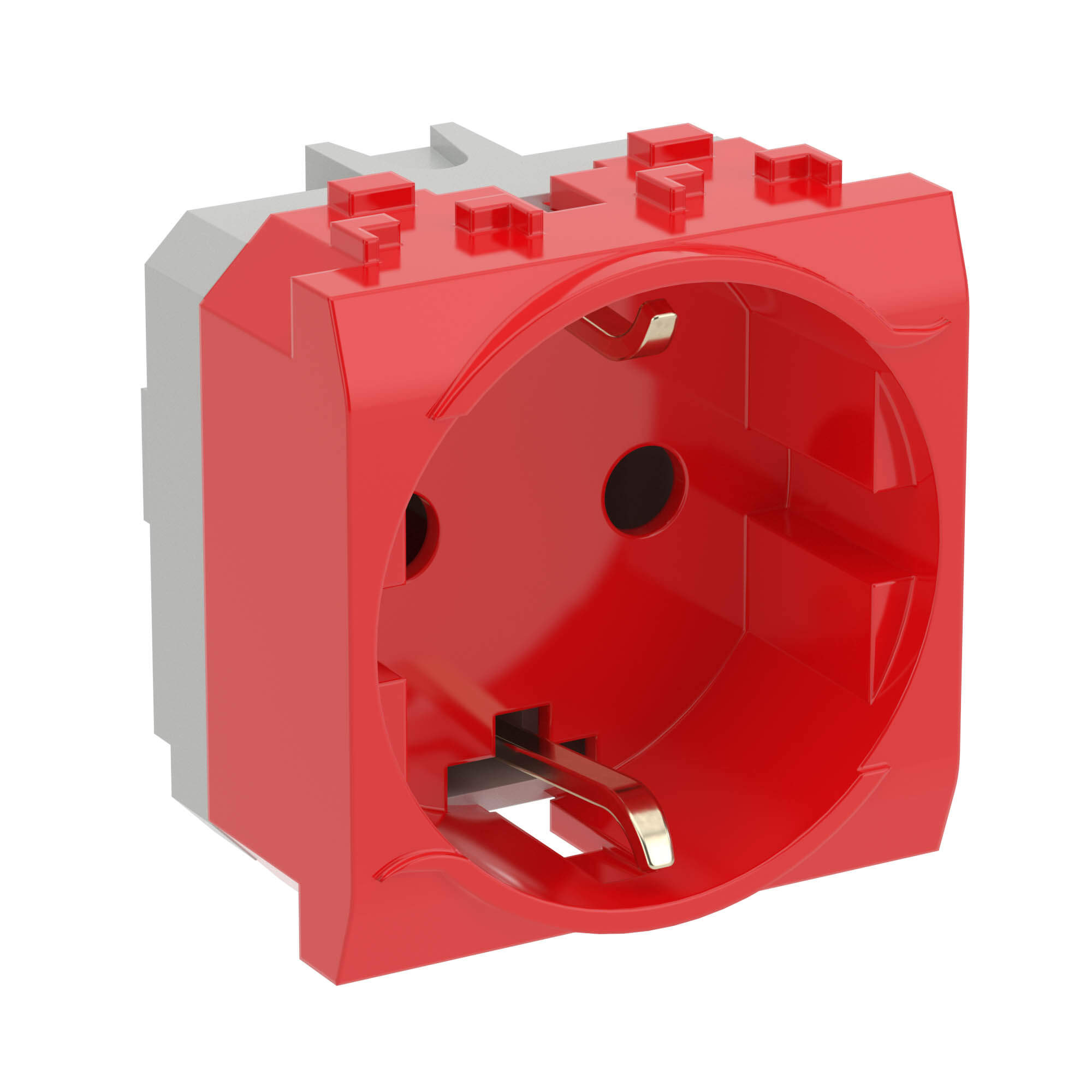 Электрическая розетка, с заземлением, со шторками, красная, 2 мод. DKC в Орске