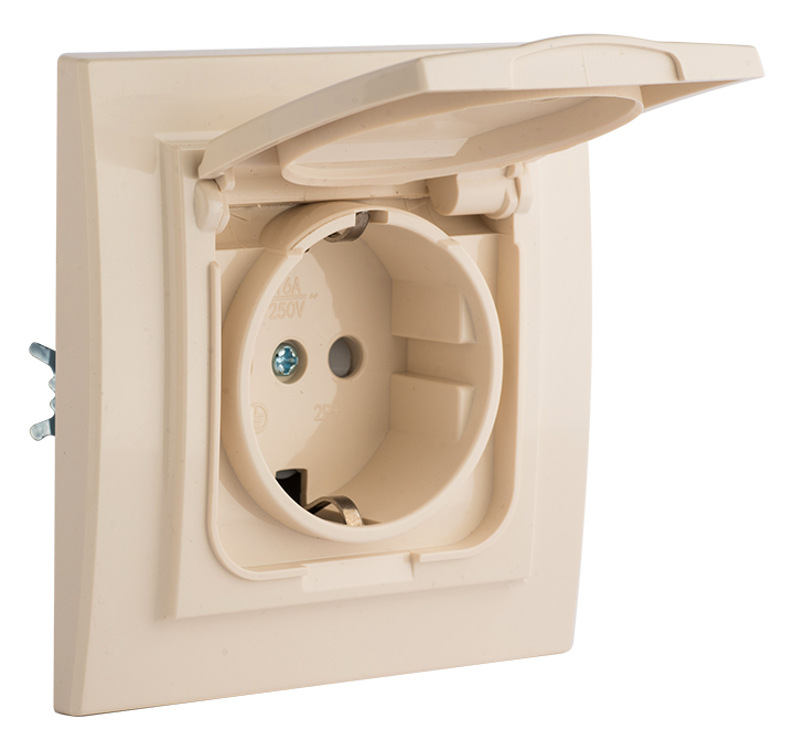 Минск Розетка 1-местная СП с/з с крышкой 16А бежевая с защ, штор, IP44 EKF в Орске