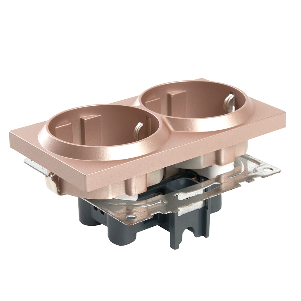Розетка 2-местная с/з (механизм), STEKKER GLS16-7114-02, 250В, 16А с защитной шторкой, серия Катрин, шампань в Орске