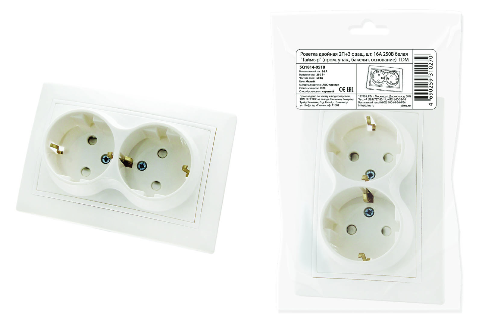 Розетка двойная 2П+З с защ. шт. 16А 250В белая "Таймыр" (пром. упак., бакелит. основание) TDM доступен в интернет‑магазине ВольтМаркет в Орске. Покупая у нас, вы получаете дополнительные преимущества: