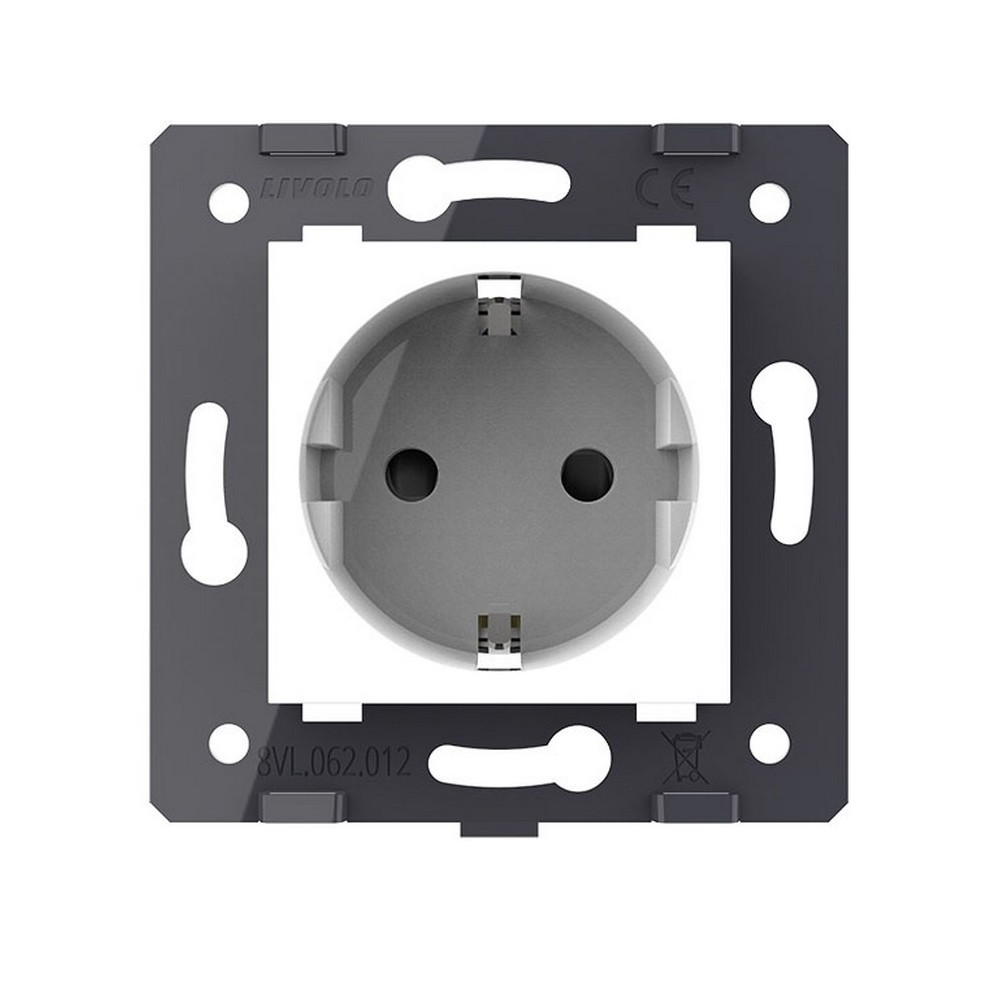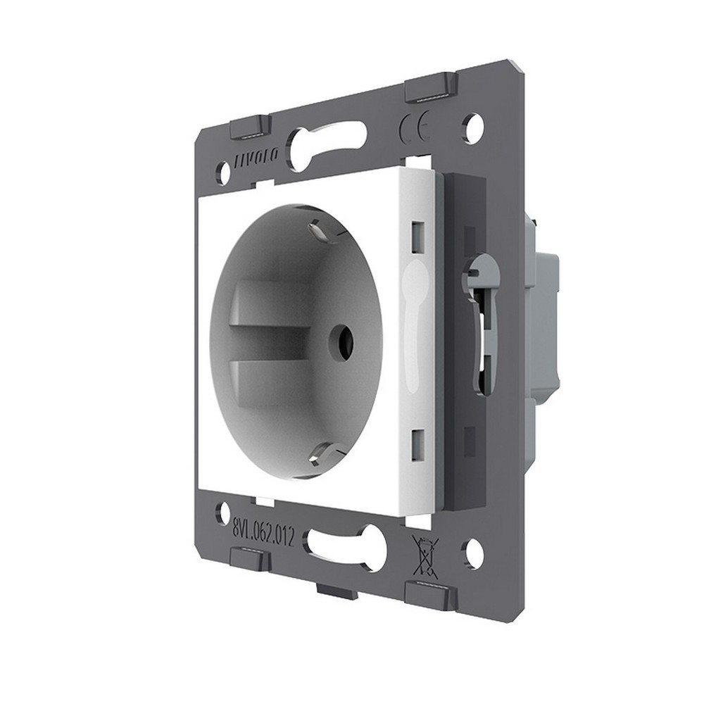 Розетка электрическая с заземлением защитными шторками 16A, зажимы, цвет белый (механизм) Livolo в Орске