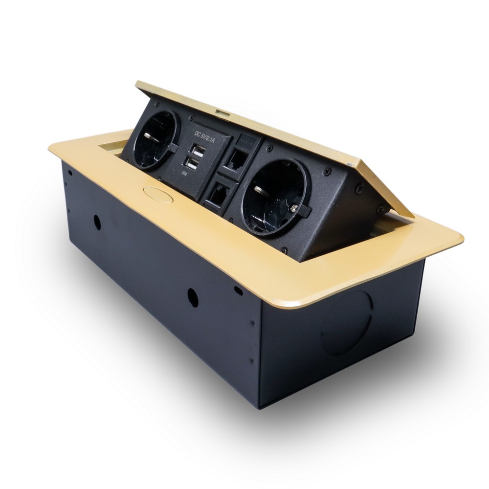 Розетка горизонтальная выдвижная 2 Euro 16А, 2 USB A с блоком 5В/2.1А, 2 RJ45 RocketSocket, проводка, цвет золотой доступен в интернет‑магазине ВольтМаркет в Орске. Покупая у нас, вы получаете дополнительные преимущества:
