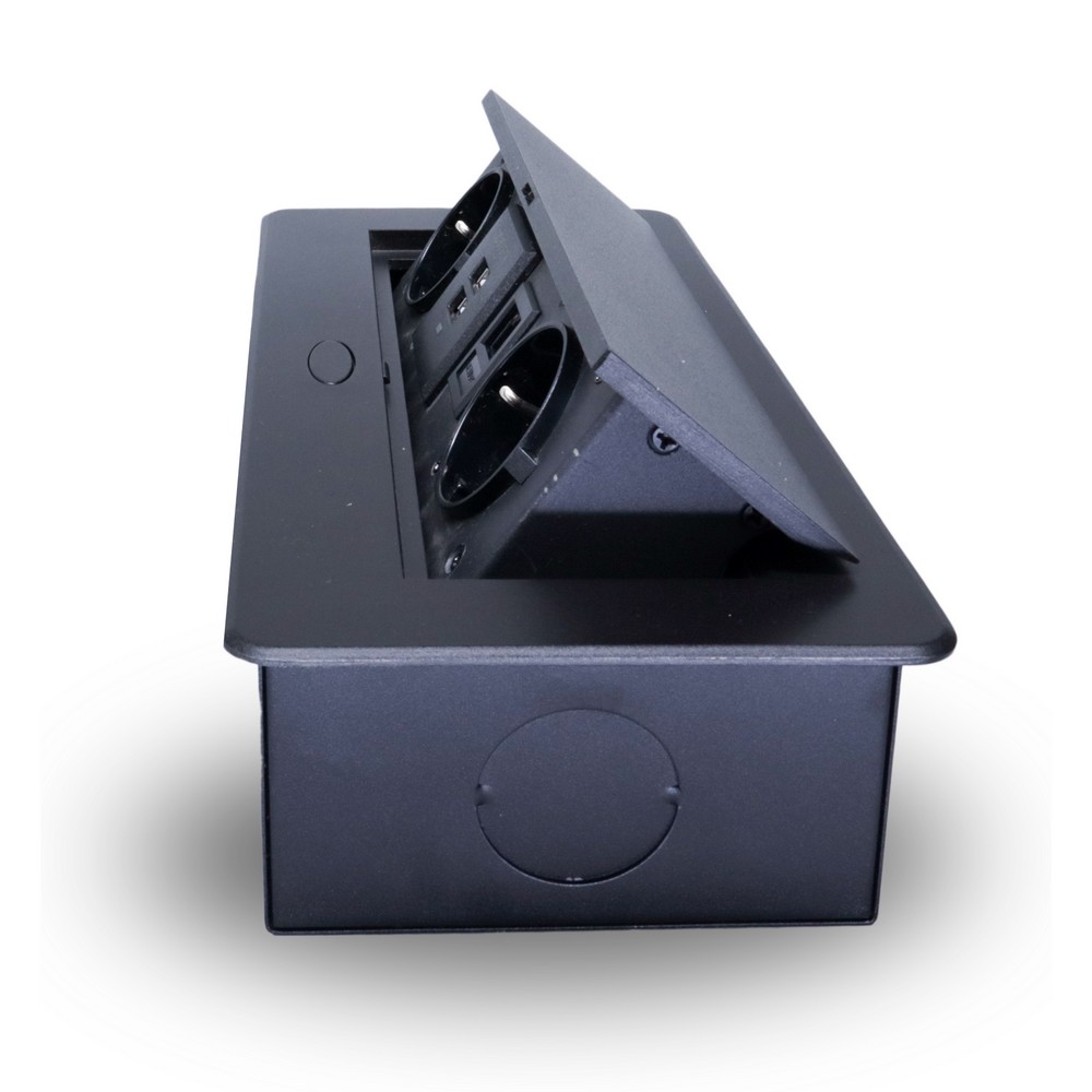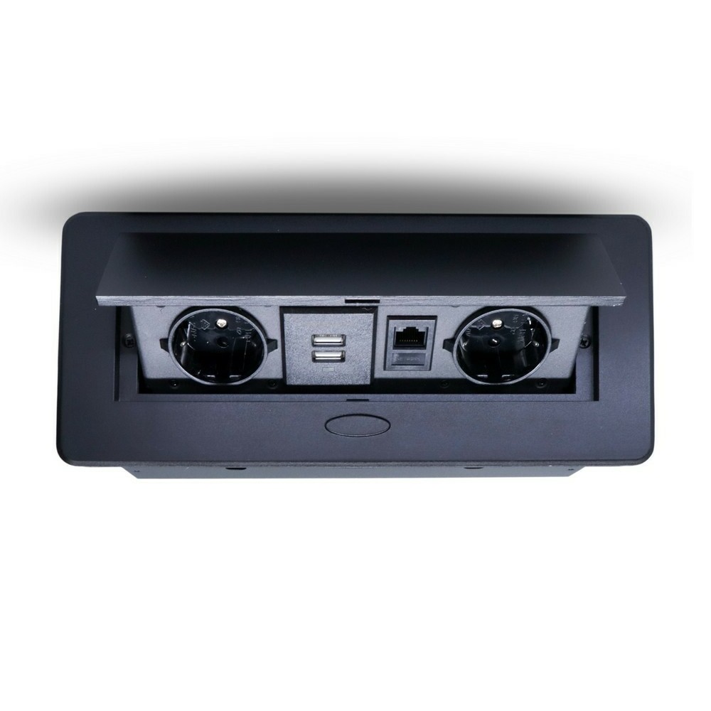 Розетка горизонтальная выдвижная 2 Euro 16А, 2 USB A с блоком 5В/2.1А, RJ45 RocketSocket, проводка, цвет черный в Орске
