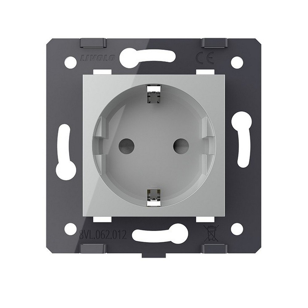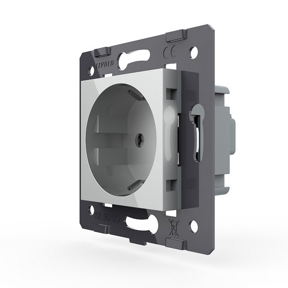 Розетка с заземлением защитными шторками серая (механизм) Livolo в Орске