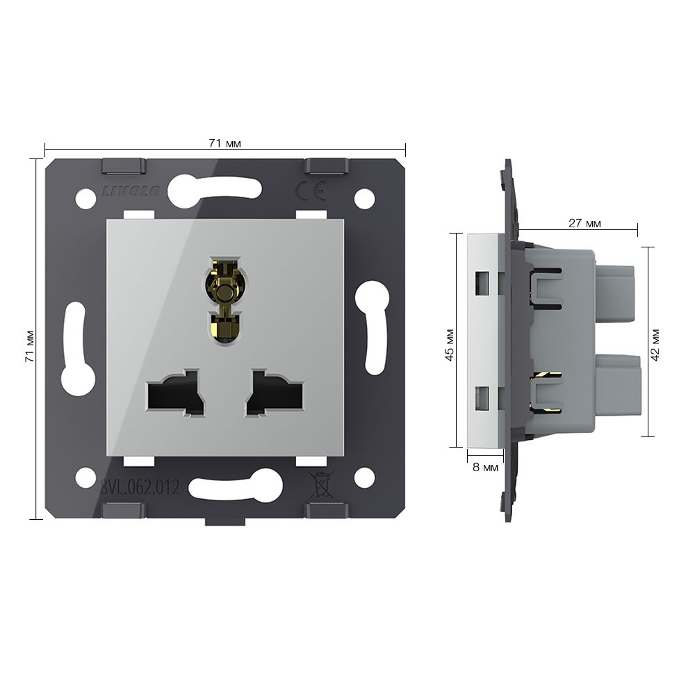 Розетка универсальная с з/з с защитными шторками 16A, цвет серый (механизм) Livolo доступен в интернет‑магазине ВольтМаркет в Орске. Покупая у нас, вы получаете дополнительные преимущества: