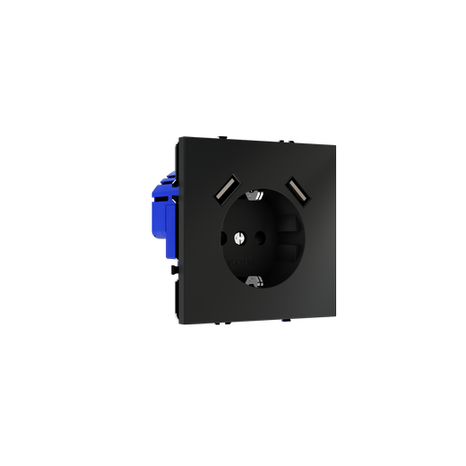 Розетка встраиваемая Voltum S70 с заземлением и защитными шторками, 16А, с USB, A+A, (черный матовый в Орске