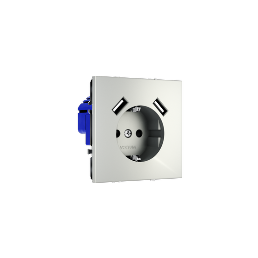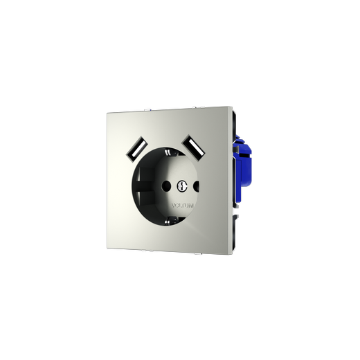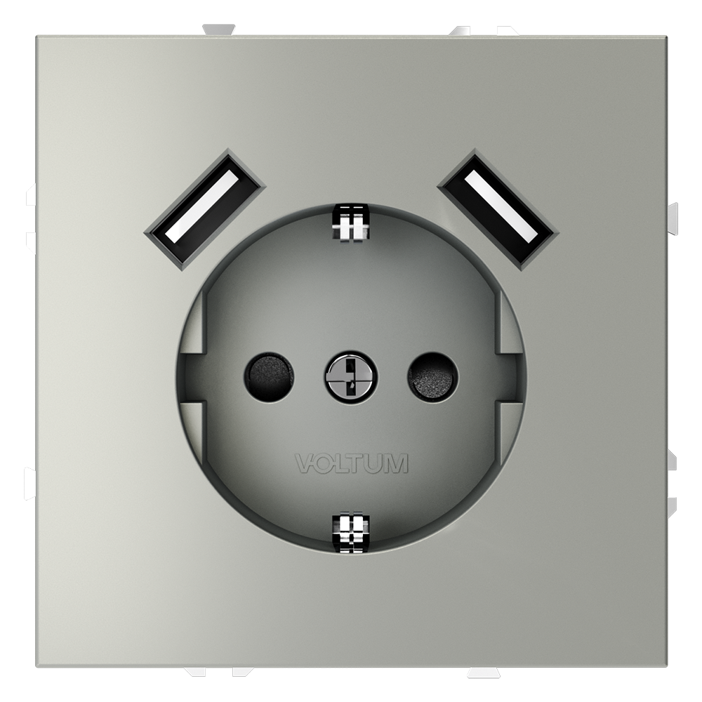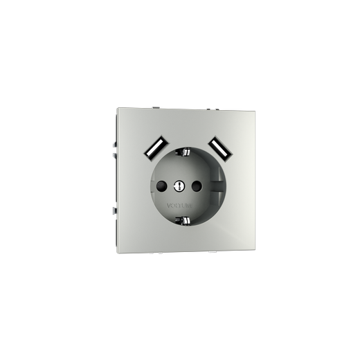 Розетка встраиваемая Voltum S70 с заземлением и защитными шторками, 16А, с USB, A+A, (сталь) в Орске