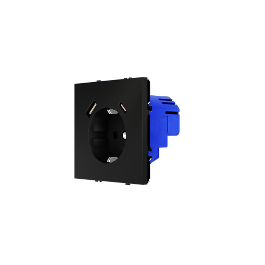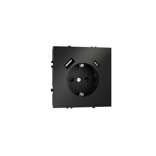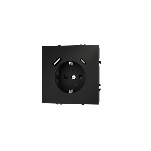 Розетка встраиваемая Voltum S70 с заземлением и защитными шторками, 16А, с USB, A+C, (черный матовый в Орске