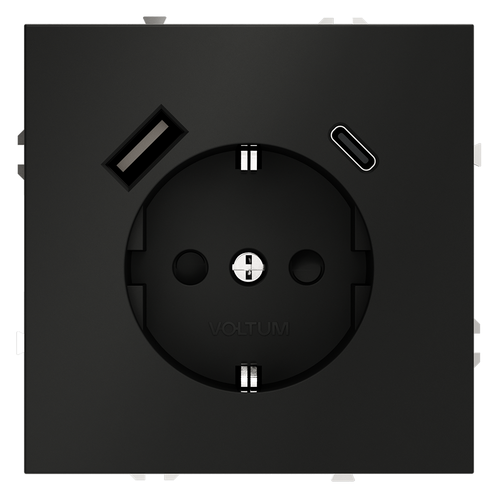 Розетка встраиваемая Voltum S70 с заземлением и защитными шторками, 16А, с USB, A+C, (черный матовый доступен в интернет‑магазине ВольтМаркет в Орске. Покупая у нас, вы получаете дополнительные преимущества: