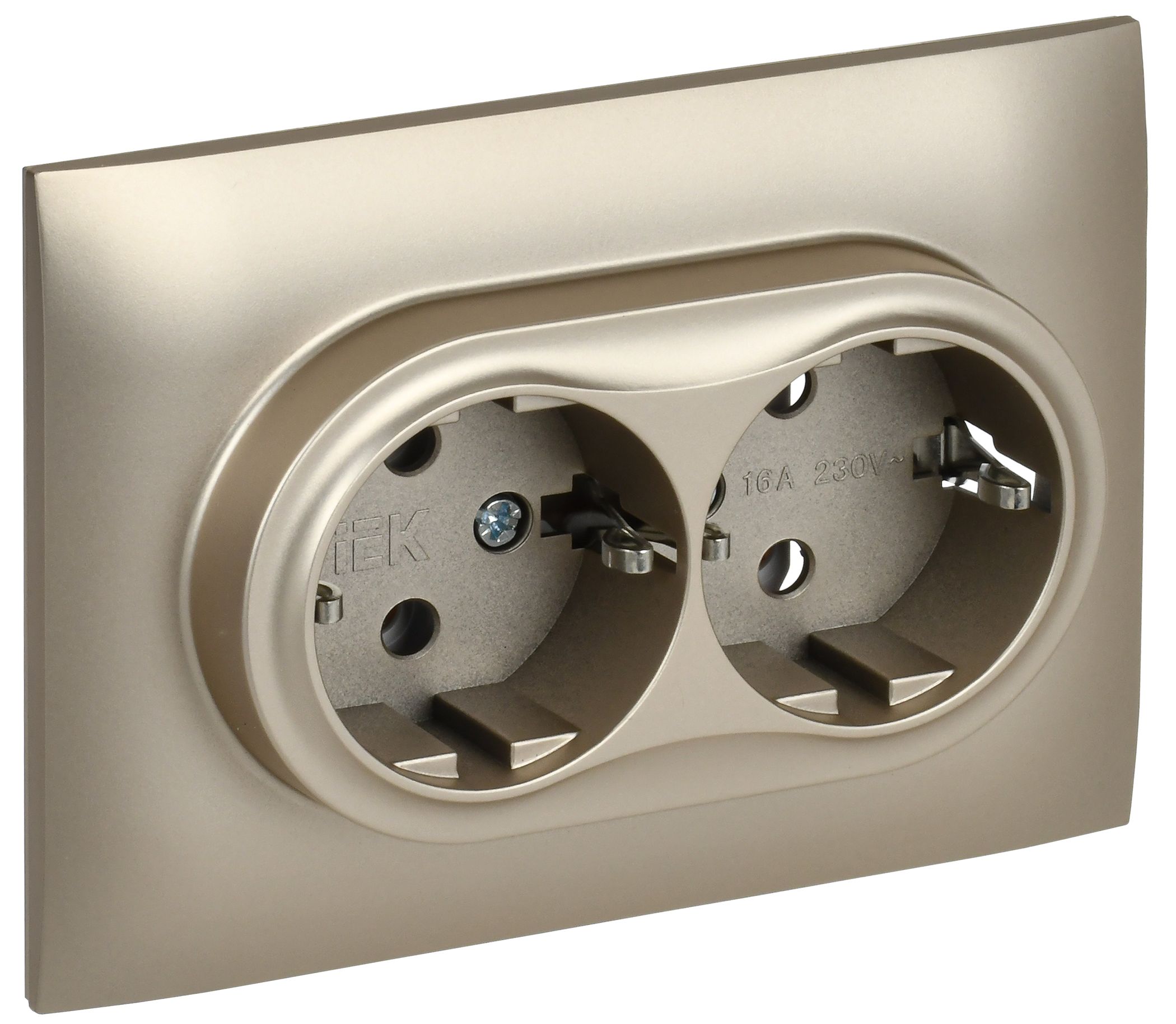 SKANDY Розетка 2-местная с заземлением без защитных шторок 16А в сборе SK-R08Sh шампань IEK в Орске