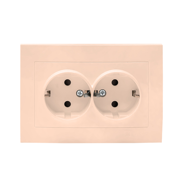 Валенсия Розетка 2-местная с/з 16А кремовая с защ, штор, EKF в Орске