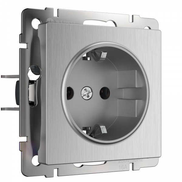 Встраиваемые механизмы Розетка СУ 1 мест. с зазем. 16А cеребряный рифленый IP20 Werkel в Орске