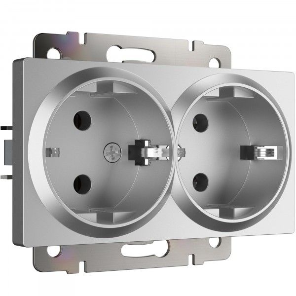 Встраиваемые механизмы Розетка СУ 2 мест. с зазем. 16А серебряный IP20 Werkel в Орске