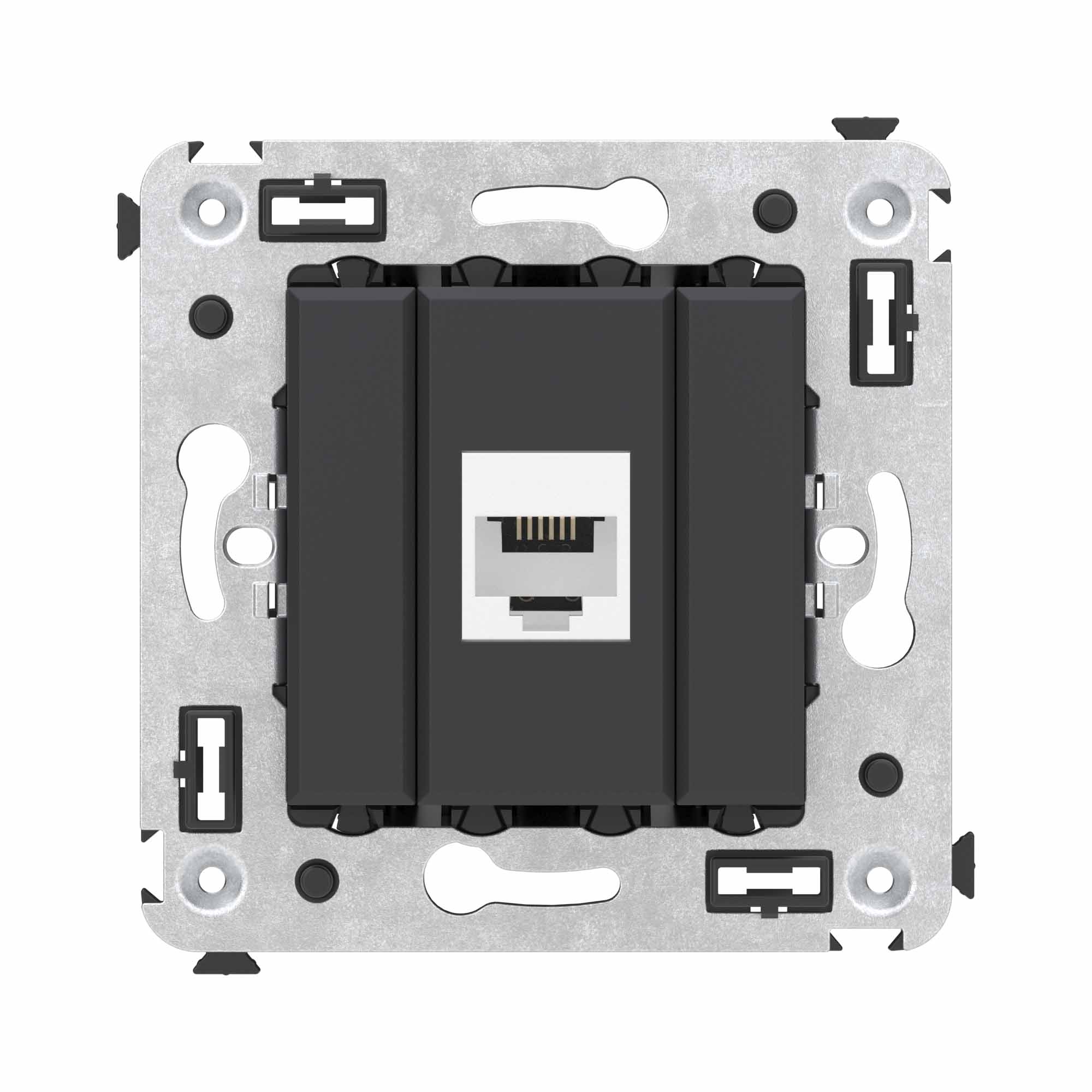 Телефонная розетка RJ-12 без шторки в стену одинарная, "Avanti", "Черный матовый" DKC в Орске