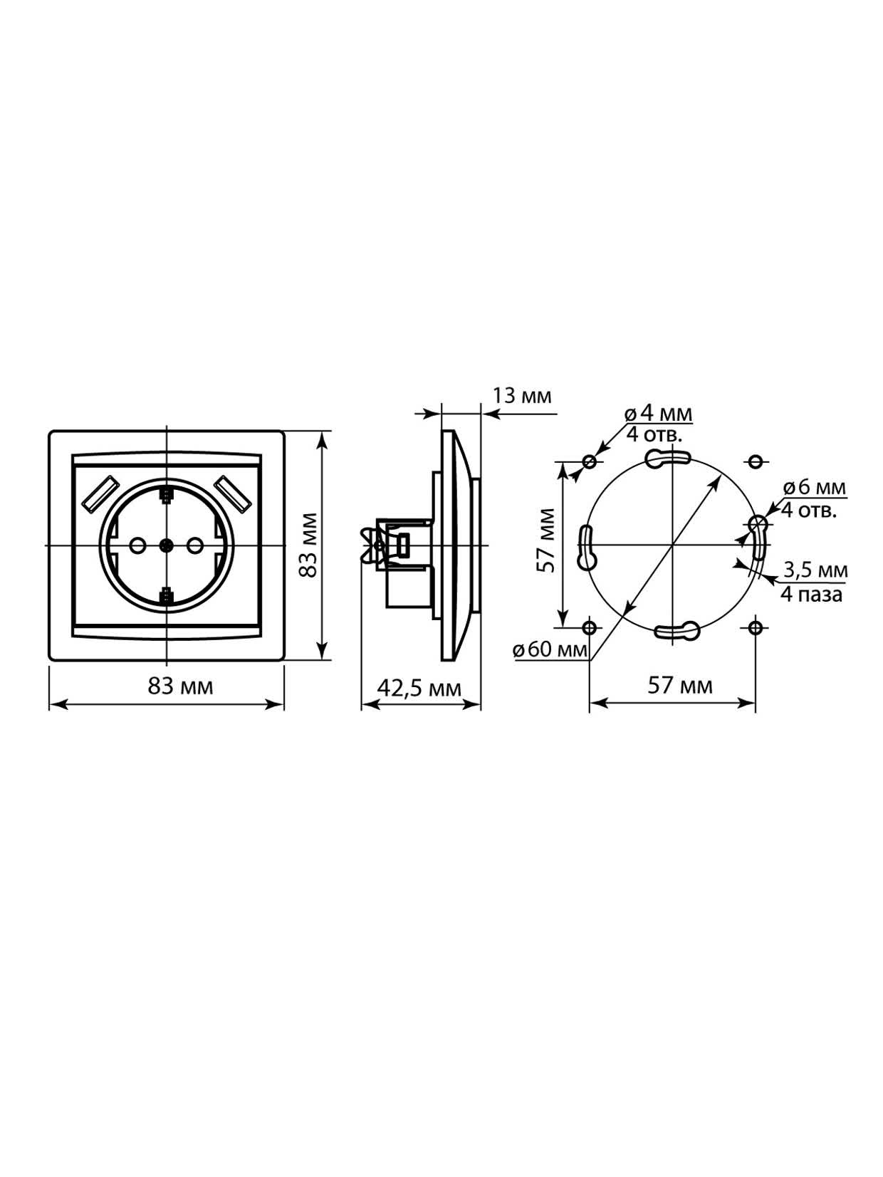 Обычно USB-розетки скрытой установки рассчитаны на ток до 2.4 А на один USB-порт, что достаточно для быстрой зарядки большинства современных устройств.