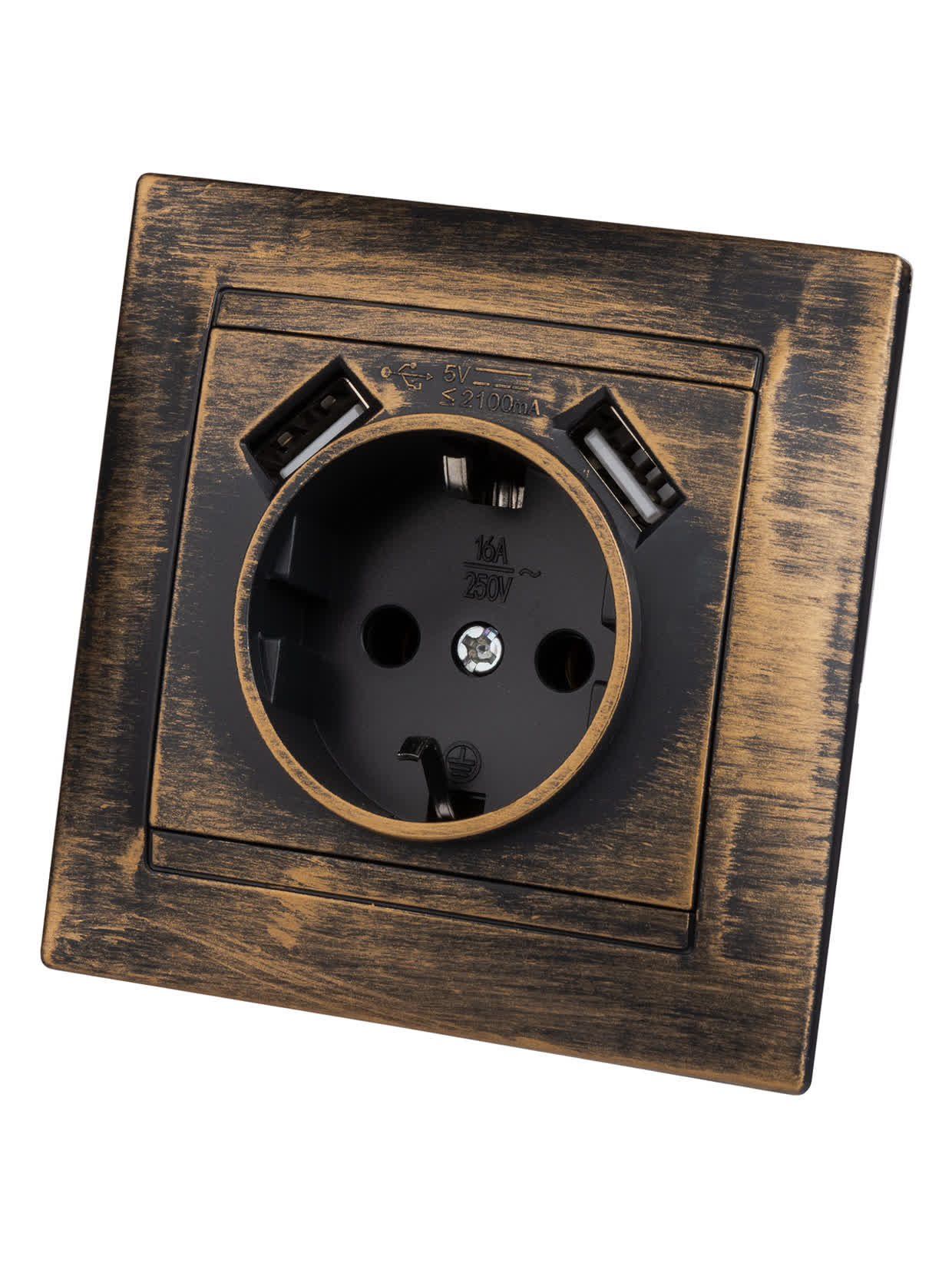Розетка 2П+З 16А 250В + 2 USB порта 2,1А 5В старинная бронза "Лама" TDM в Орске