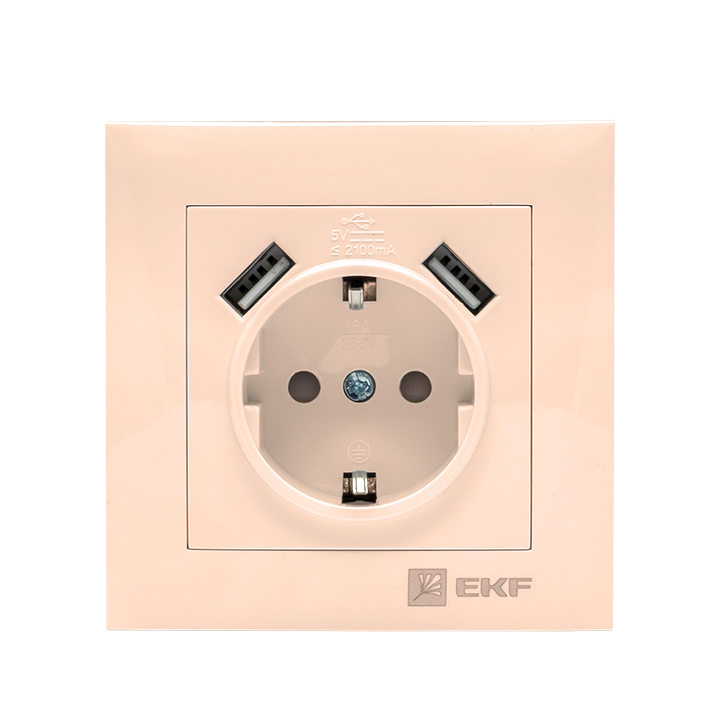 Валенсия Розетка 1-местная с/з 16А кремовая с защ, штор, с 2 USB 2,1А EKF в Орске