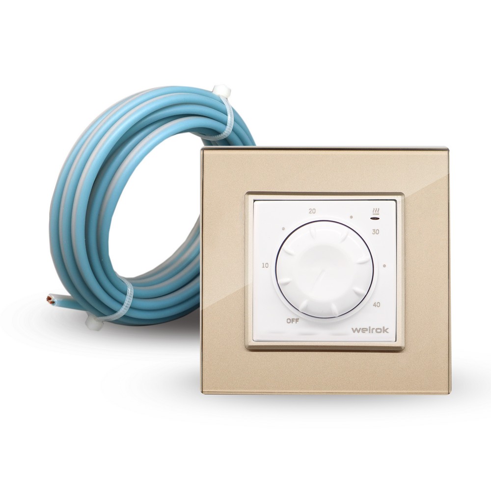 Терморегулятор Welrok RTP для рамки LIVOLO с механическим управлением, датчик пола 3 м, цвет белый с золотой рамкой в Орске