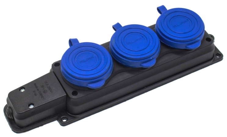 Колодка 3нг с з/к 16А IP44 черная с синей кр. (каучук) (15/60) Альфа в Орске