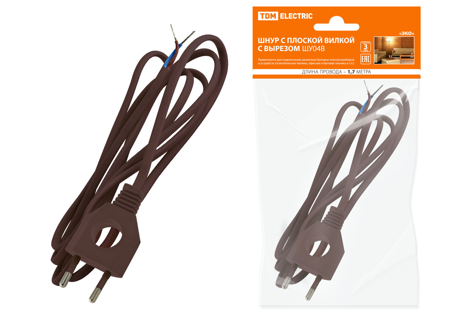 Шнур с плоской вилкой с вырезом ШУ04 ШВВП 2х0,75мм2 1,7 м. коричневый "ЭКО" TDM доступен в интернет‑магазине ВольтМаркет в Орске. Покупая у нас, вы получаете дополнительные преимущества: