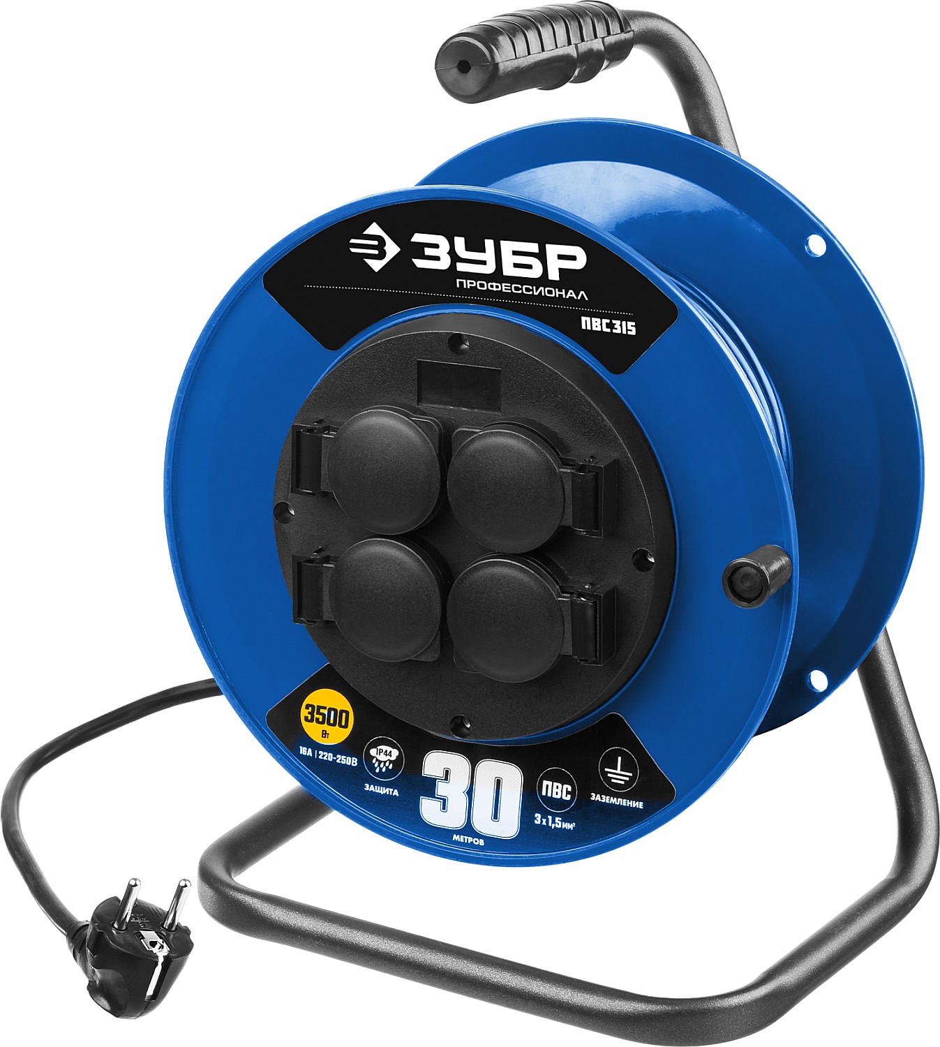 Силовой удлинитель на катушке ПВС 3х1.5 30м 3500Вт IP44, ПВС 315 ЗУБР в Орске