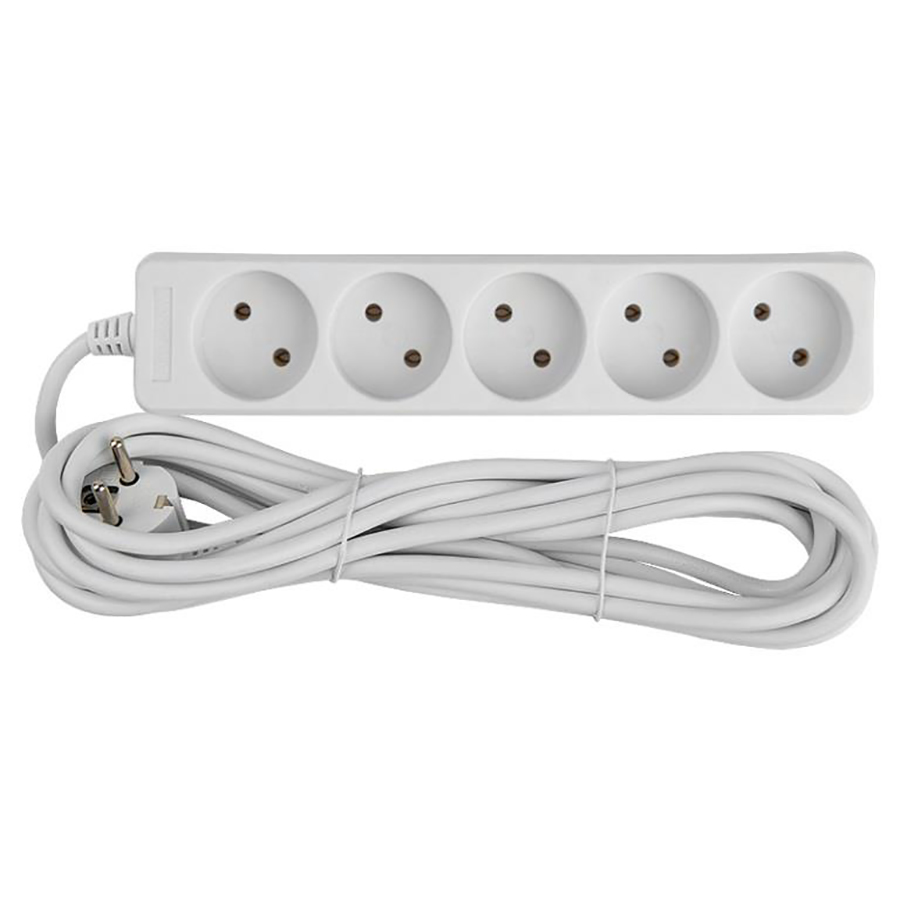 Удлинитель бытовой GES-10-2x075-5-5m, 10А, 2х0,75 мм2, 5 мест, 5 метров, без заземления, без вылючателя General в Орске