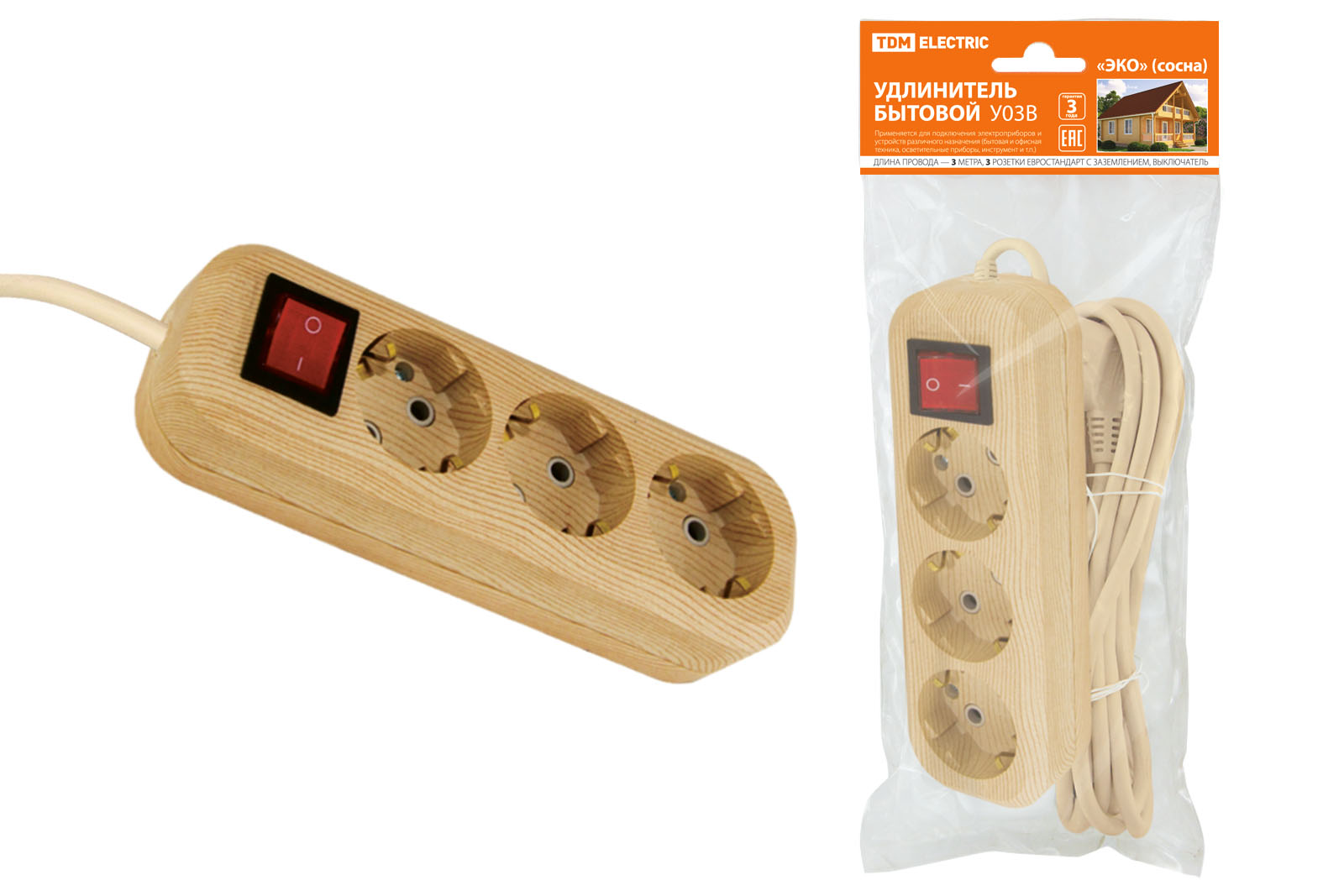 Удлинитель бытовой У03В выключатель, 3 гнезда, 3метра,2П+3, ПВС 3х1мм2 "Эко" (сосна) 16А/250В TDM доступен в интернет‑магазине ВольтМаркет в Орске. Покупая у нас, вы получаете дополнительные преимущества: