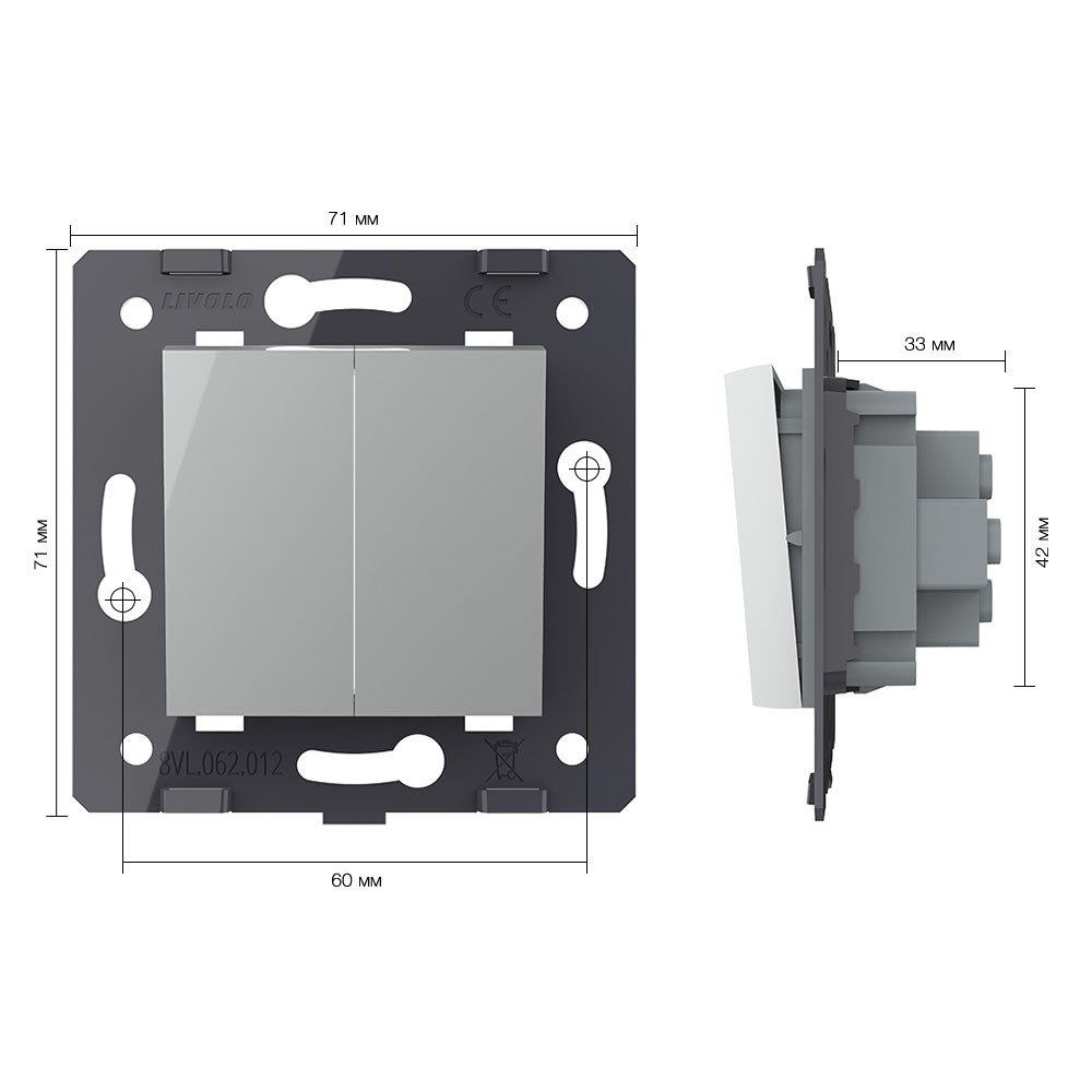 Двухклавишный механический выключатель, цвет серый (механизм) Livolo доступен в интернет‑магазине ВольтМаркет в Орске. Покупая у нас, вы получаете дополнительные преимущества: