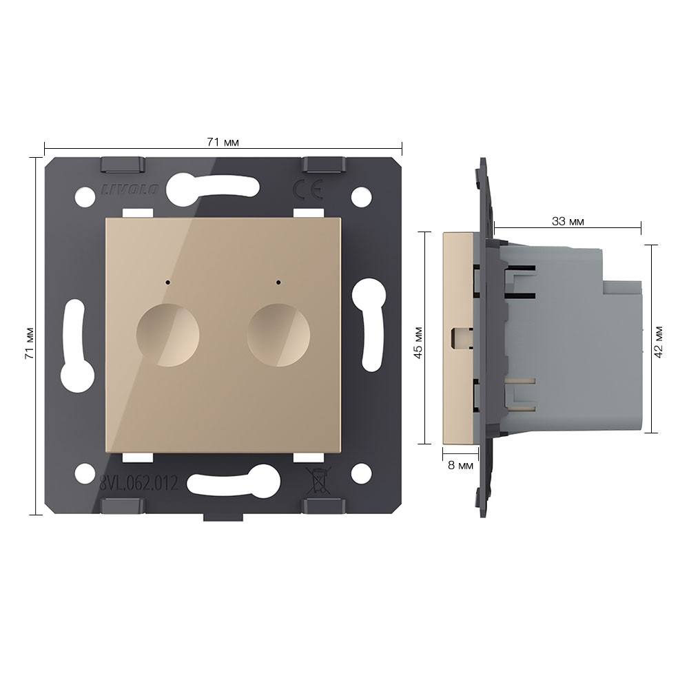 Двухклавишный сенсорный выключатель Module, цвет золотой (механизм) Livolo в Орске