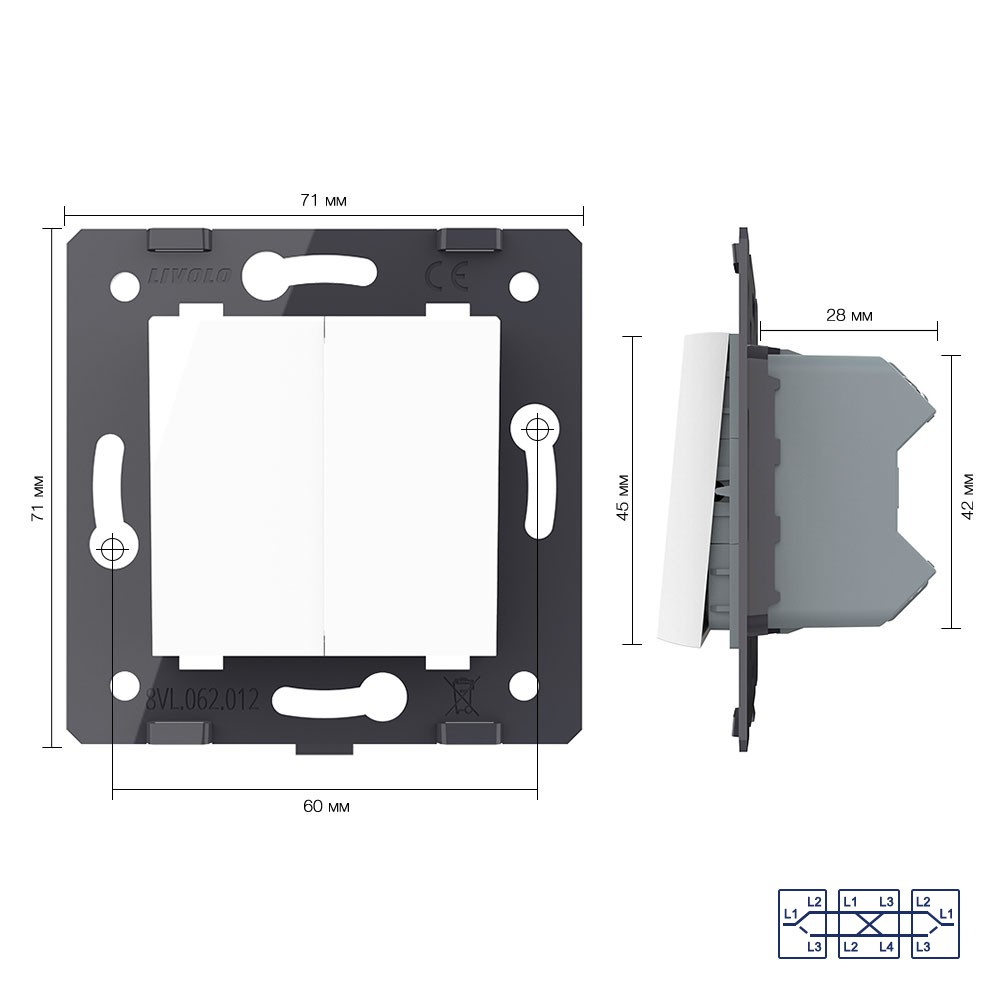 Клавиша перекрестного механического выключателя, цвет белый (механизм) Livolo доступен в интернет‑магазине ВольтМаркет в Орске. Покупая у нас, вы получаете дополнительные преимущества: