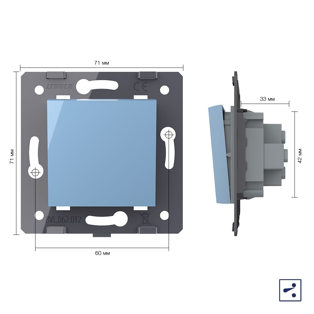 Одноклавишный проходной механический выключатель, цвет синий (механизм) Livolo доступен в интернет‑магазине ВольтМаркет в Орске. Покупая у нас, вы получаете дополнительные преимущества: