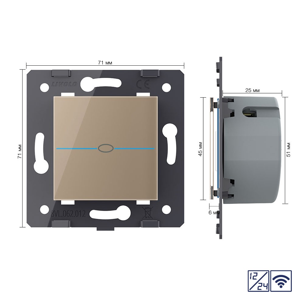 Одноклавишный сенсорный выключатель Quadro 12/24В с радиоупр., цвет золотой (механизм) Livolo доступен в интернет‑магазине ВольтМаркет в Орске. Покупая у нас, вы получаете дополнительные преимущества: