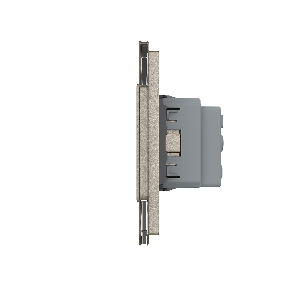 Одноклавишный сенсорный выключатель с двумя розетками 3 поста, цвет шампань Livolo в Орске