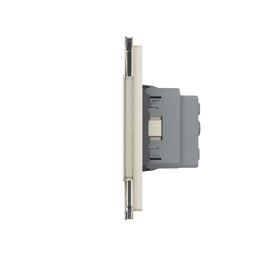 Одноклавишный сенсорный выключатель с двумя розетками 3 поста, цвет жемчужный Livolo в Орске