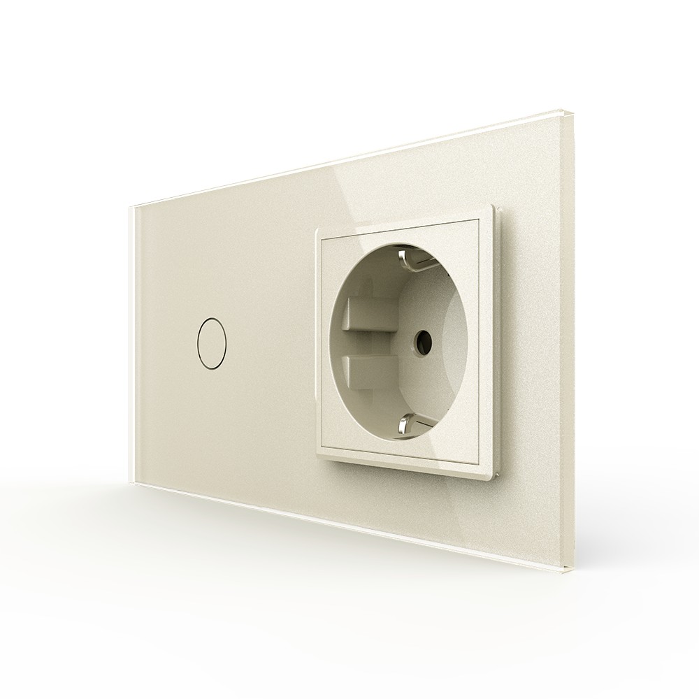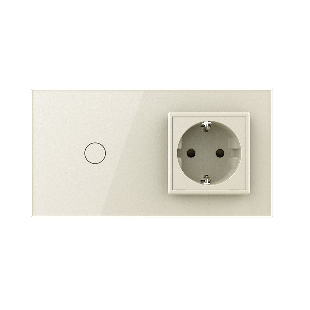 Одноклавишный сенсорный выключатель с розеткой 2 поста, цвет жемчужный Livolo в Орске