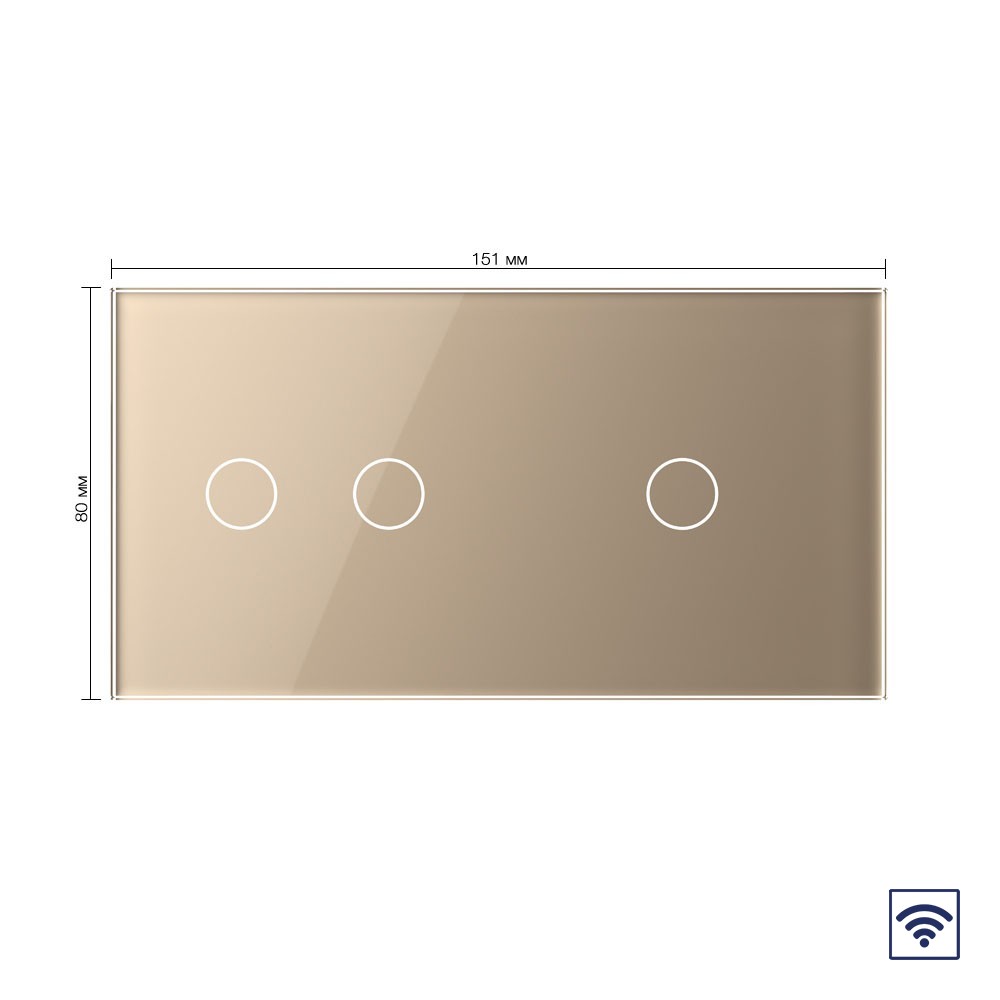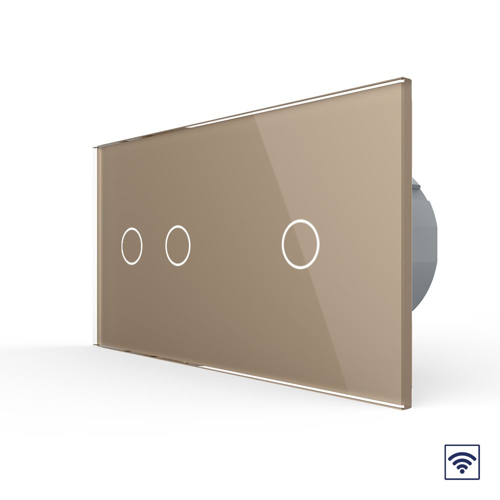 Сенсорный радиоуправляемый выключатель 3 клавиши (2-1), 2 поста Золотой Livolo в Орске