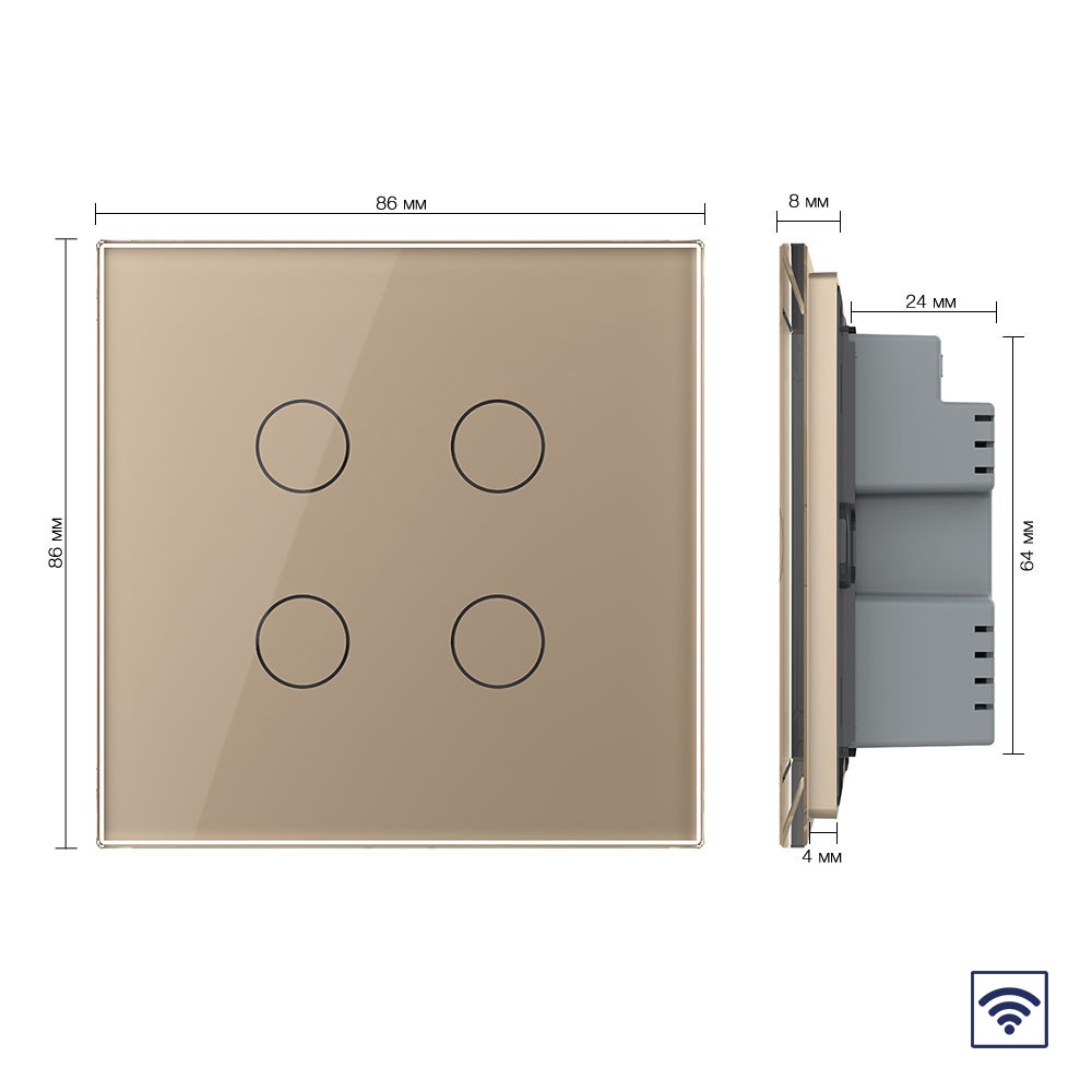 Сенсорный радиоуправляемый выключатель 4 клавиши 1 пост Золотой UK стандарт Livolo доступен в интернет‑магазине ВольтМаркет в Орске. Покупая у нас, вы получаете дополнительные преимущества: